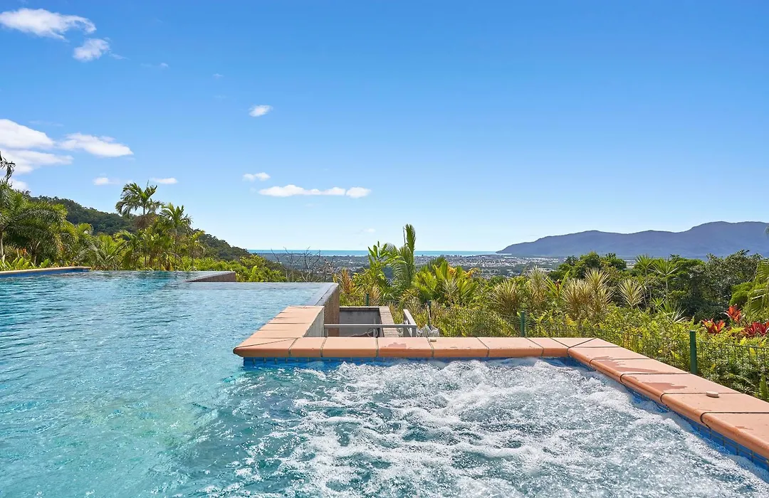 La villa Barong Luxury Estate Overlooking Cairns Unrivalled Privacy And Location dispose d'une terrasse avec vue sur la mer, ainsi que d'une piscine. Offrant des vues sur le jardin, villa invite les clients à visiter le Centre de loisirs Cazalys Cairns, qui se situe à 4 km.
